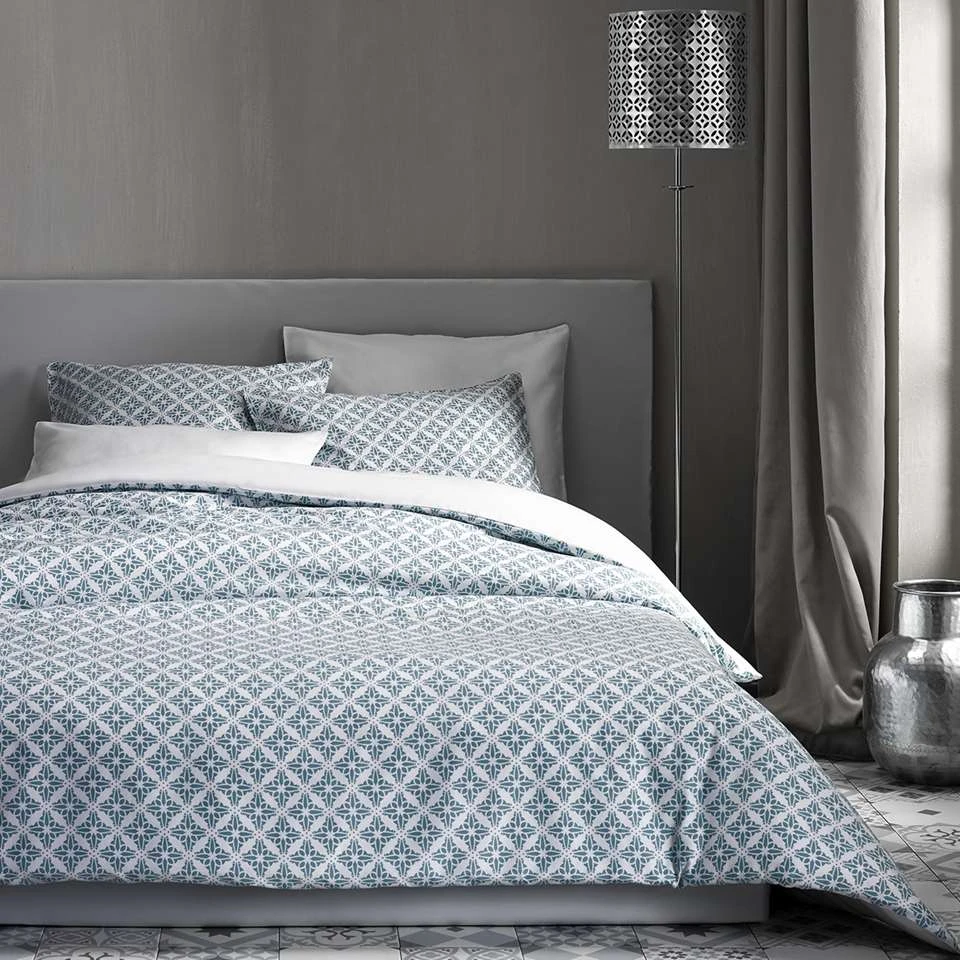 De Witte Lietaer Dekbedovertrek Katoen Satijn, Azulejos Tourmalin. Het bedrukt bedlinnen is een lichtgewicht katoen-satijn dat ultra comfortabel aanvoelt door de satijnbinding, het gekamd katoen en de extra zijdeglans. De hoge weefdichtheid zorgt er ook voor dat de stof heel glad aanvoelt. Het dekbedovertrek, alsook de kussensloop, zijn dubbelzijdig en dus omkeerbaar. Het dekbedovertrek heeft een wijde flessenhals en kan daardoor makkelijk over het dekbed getrokken worden. De Witte Lietaer staat bekend om hun kwaliteitsproducten en rijke geschiedenis. Kortom, met een product van De Witte Lietaer koopt u een voortreffelijke ervaring.