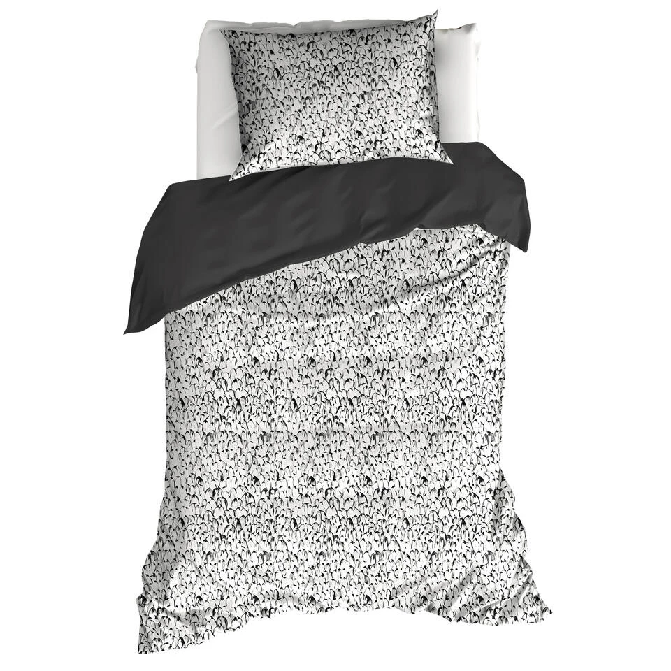 De Witte Lietaer Dekbedovertrek, Waddle Dark Shadow. Prachtig eenpersoons satijn katoenen dekbedovertrek met een hoge weefdichtheid. Het bedlinnen is een lichtgewicht katoen-satijn dat ultra comfortabel aanvoelt door de satijnbinding, het gekamd katoen en de extra zijdeglans. De hoge weefdichtheid zorgt er tevens voor dat de stof glad aanvoelt. Het dekbedovertrek en de kussensloop zijn dubbelzijdig en dus omkeerbaar. Op de voorkant staat een dessin van kleine pinguïns en de achterzijde heeft een effen kleur. Door de extra wijde flessenhals is de hoes makkelijk over het dekbed te trekken. De Witte Lietaer staat bekend om hun kwaliteitsproducten en rijke geschiedenis. Kortom, met een product van De Witte Lietaer koopt u een voortreffelijke ervaring.Â