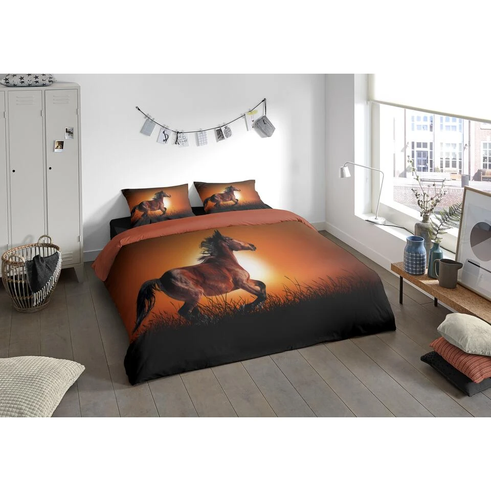 Dekbedovertrek “Freedom” van Pure met paard, in de kleur “Bruin” is gemaakt van 100% Microfiber. Het is een prettige stof, gemaakt van synthetische garen maar vergelijkbaar met het natuurlijke materiaal katoen, doordat het zacht en soepel aanvoelt. Het is geschikt voor ieder jaargetijde en door de lichte glans heeft het een luxe uitstraling. Na het wassen is deze stof snel droog en kreukt niet tot nauwelijks waardoor strijken (vrijwel) niet nodig is. Ook beschermt het tegen bacteri’n, vuil en huisstofmijt