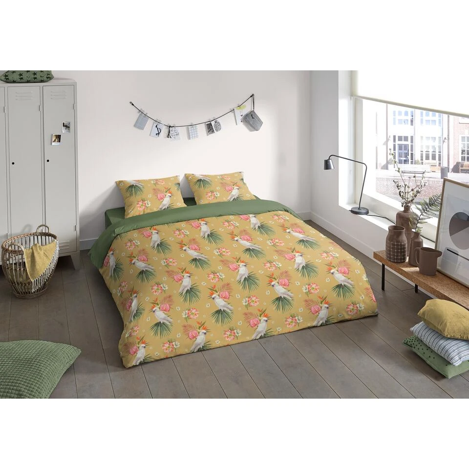Dekbedovertrek “Kakatoe” van Pure met vogels, in de kleur “Oker” is gemaakt van 100% Microfiber. Het is een prettige stof, gemaakt van synthetische garen maar vergelijkbaar met het natuurlijke materiaal katoen, doordat het zacht en soepel aanvoelt. Het is geschikt voor ieder jaargetijde en door de lichte glans heeft het een luxe uitstraling. Na het wassen is deze stof snel droog en kreukt niet tot nauwelijks waardoor strijken (vrijwel) niet nodig is. Ook beschermt het tegen bacteri’n, vuil en huisstofmijt