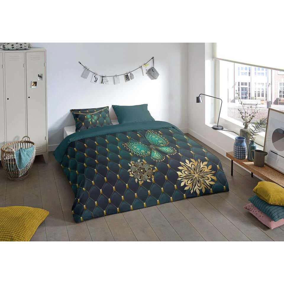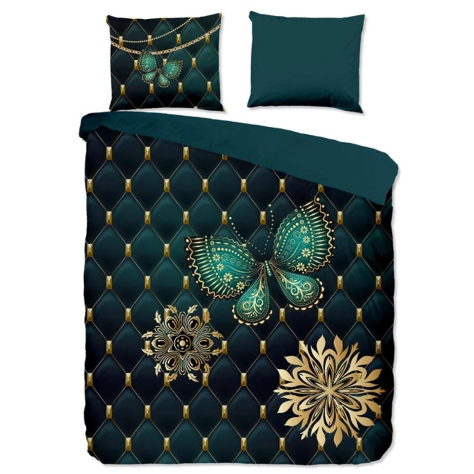 Dekbedovertrek “Lavanya” van Pure met vlinder, in de kleur “Petrol” is gemaakt van 100% Microfiber. Het is een prettige stof, gemaakt van synthetische garen maar vergelijkbaar met het natuurlijke materiaal katoen, doordat het zacht en soepel aanvoelt. Het is geschikt voor ieder jaargetijde en door de lichte glans heeft het een luxe uitstraling. Na het wassen is deze stof snel droog en kreukt niet tot nauwelijks waardoor strijken (vrijwel) niet nodig is. Ook beschermt het tegen bacteri’n, vuil en huisstofmijt
