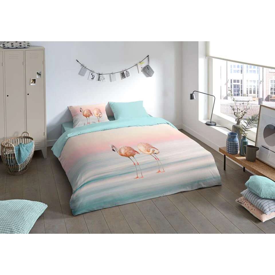Dekbedovertrek “Lounge” van Pure met flamingo’s, in de kleur “Multi” is gemaakt van 100% Microfiber. Het is een prettige stof, gemaakt van synthetische garen maar vergelijkbaar met het natuurlijke materiaal katoen, doordat het zacht en soepel aanvoelt. Het is geschikt voor ieder jaargetijde en door de lichte glans heeft het een luxe uitstraling. Na het wassen is deze stof snel droog en kreukt niet tot nauwelijks waardoor strijken (vrijwel) niet nodig is. Ook beschermt het tegen bacteri’n, vuil en huisstofmijt