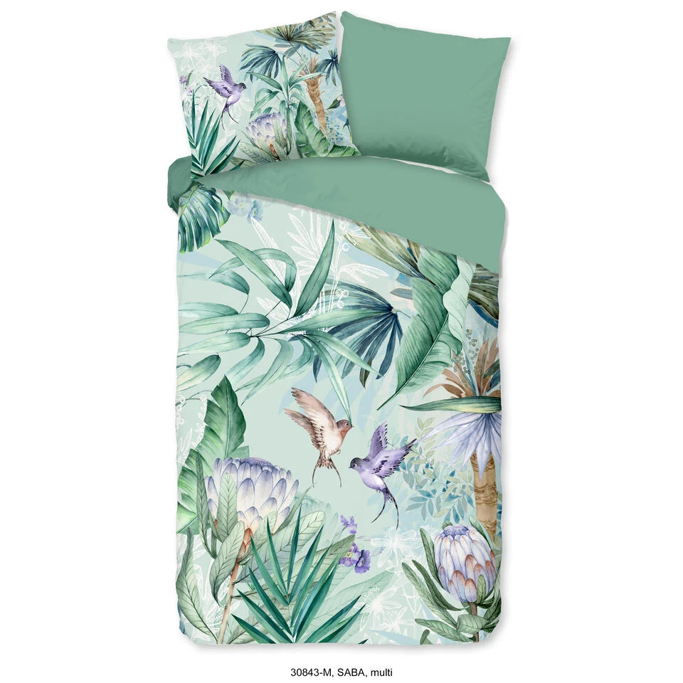Dekbedovertrek “Saba” van Pure met jungle print, in de kleur “Multi” is gemaakt van 100% Microfiber. Het is een prettige stof, gemaakt van synthetische garen maar vergelijkbaar met het natuurlijke materiaal katoen, doordat het zacht en soepel aanvoelt. Het is geschikt voor ieder jaargetijde en door de lichte glans heeft het een luxe uitstraling. Na het wassen is deze stof snel droog en kreukt niet tot nauwelijks waardoor strijken (vrijwel) niet nodig is. Ook beschermt het tegen bacteri’n, vuil en huisstofmijt